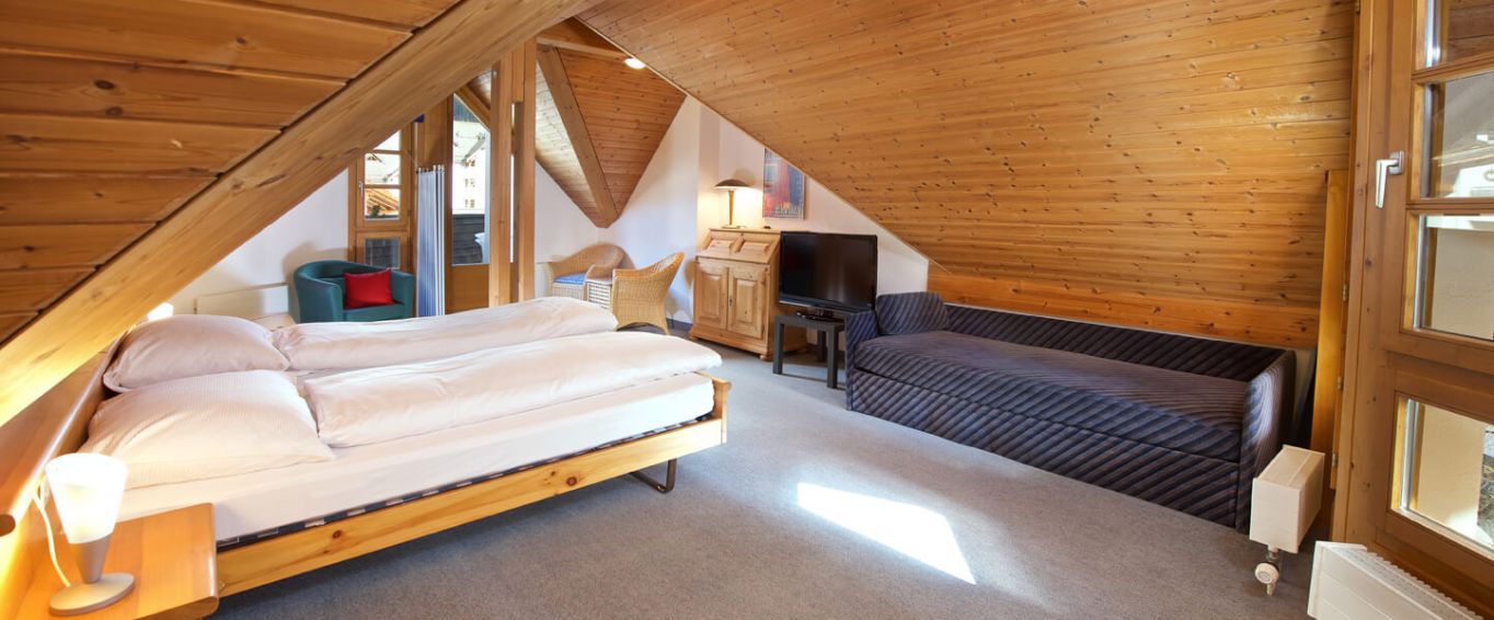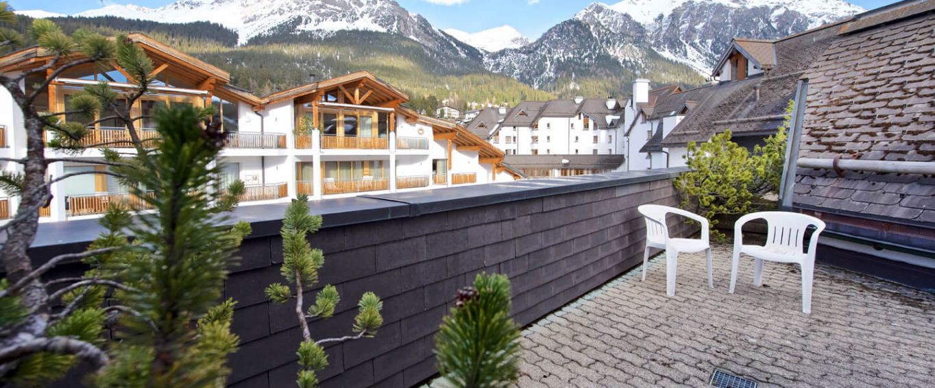 3.5 Zimmer Dachgeschoss-Ferienwohnung über zwei Etagen im Hotel Schweizerhof, hat ca. 85 m² und ist für max. 5 Personen geeignet, sonnige und sehr ruhige Lage, Balkon nach Süd-West gerichtet mit Blick auf den Berg „Scalottas“, die Dachterrasse hat einen schönen Blick zum „Lenzerhorn“ und „Rothorn“. Die Wohnung verfügt über zwei separate Schlafzimmer mit je einem Doppelbett - jenes im Dachgeschoss mit zusätzlicher Schlafcouch - ein grosses Wohnzimmer mit Cheminée sowie eine offene Küche mit Essplatz. Ein Personenlift und reservierter Garagenstellplatz ist vorhanden.